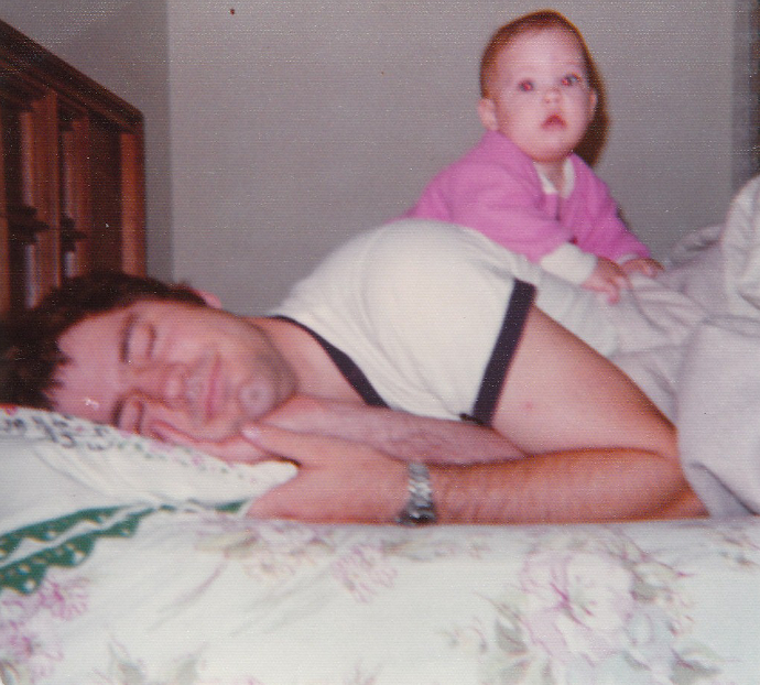 Wait! Breaking news on the mystery! I just noticed this picture of my dad and me. Could this be the Virginia shirt he’s sleeping in?! I mean, it *could* be? I don’t have my forensic tools on me at the moment, but…who knows?!