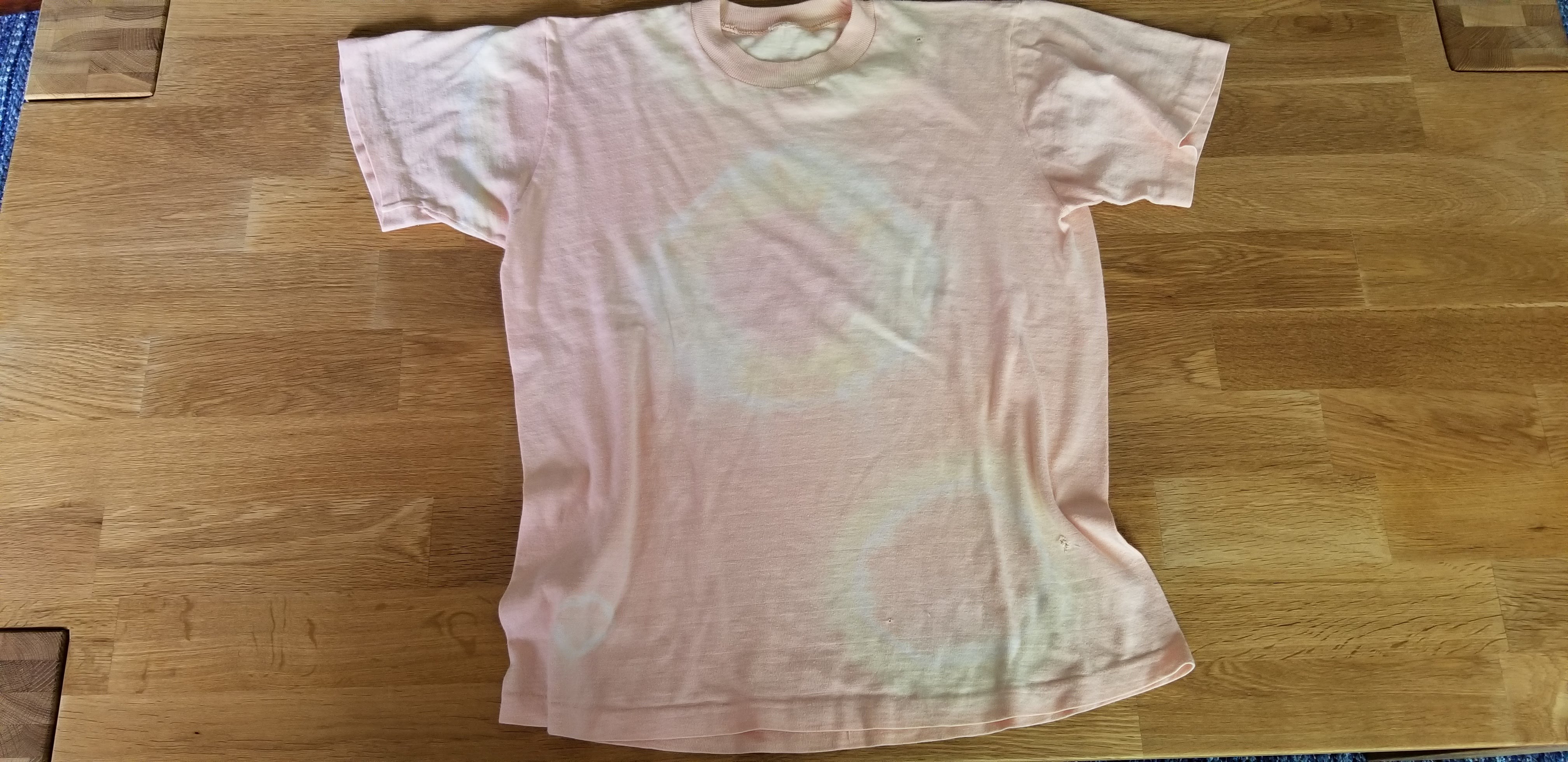 The tie dye shirt my mom made in art class in high school! The light in my living room doesn’t do it justice in the photo. It’s beautiful shades of peach and pink and yellow and white. She told me some of her classmates liked hers so much they asked her to make ones for them, but alas, an entrepreneur she was not.