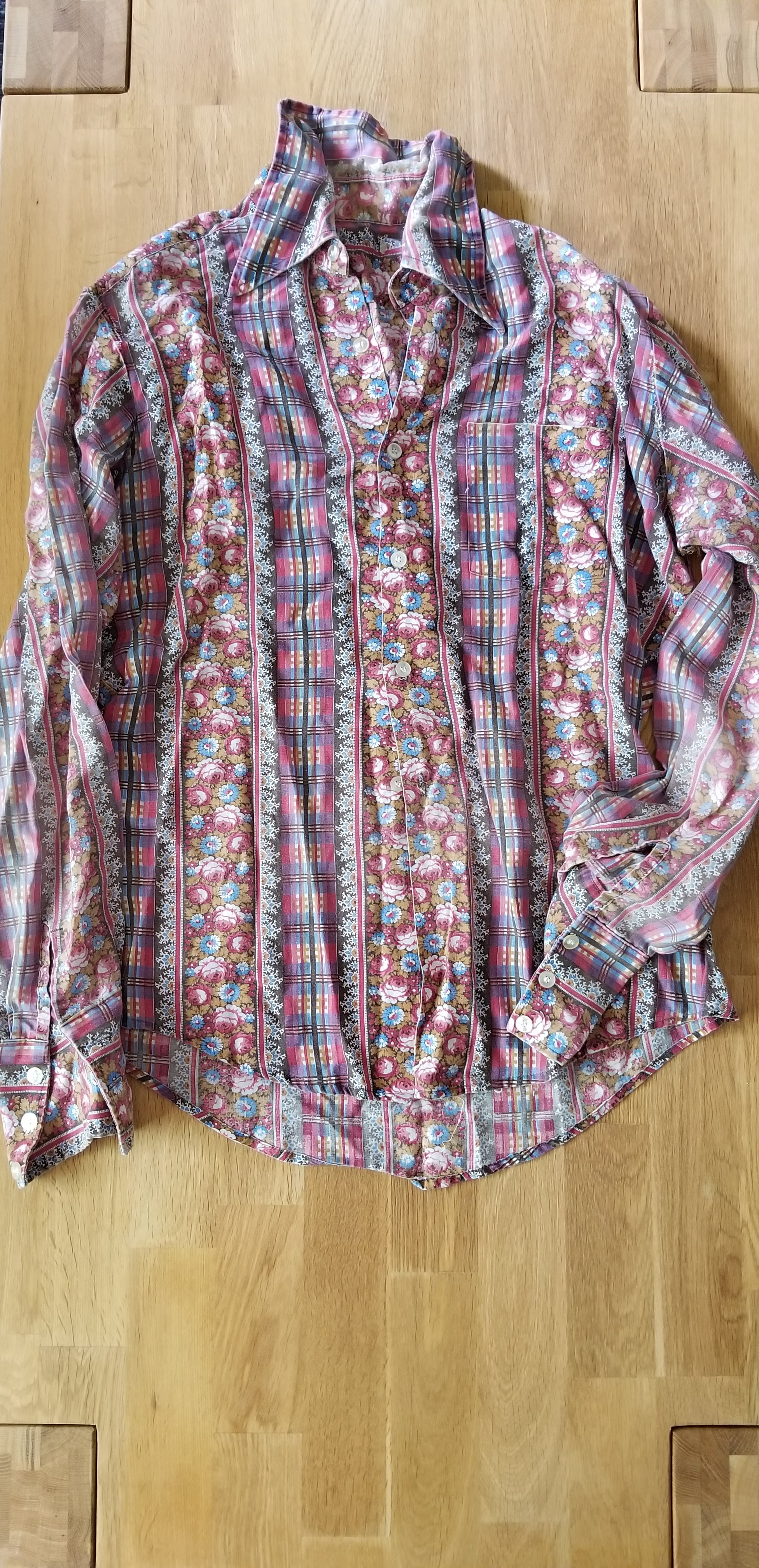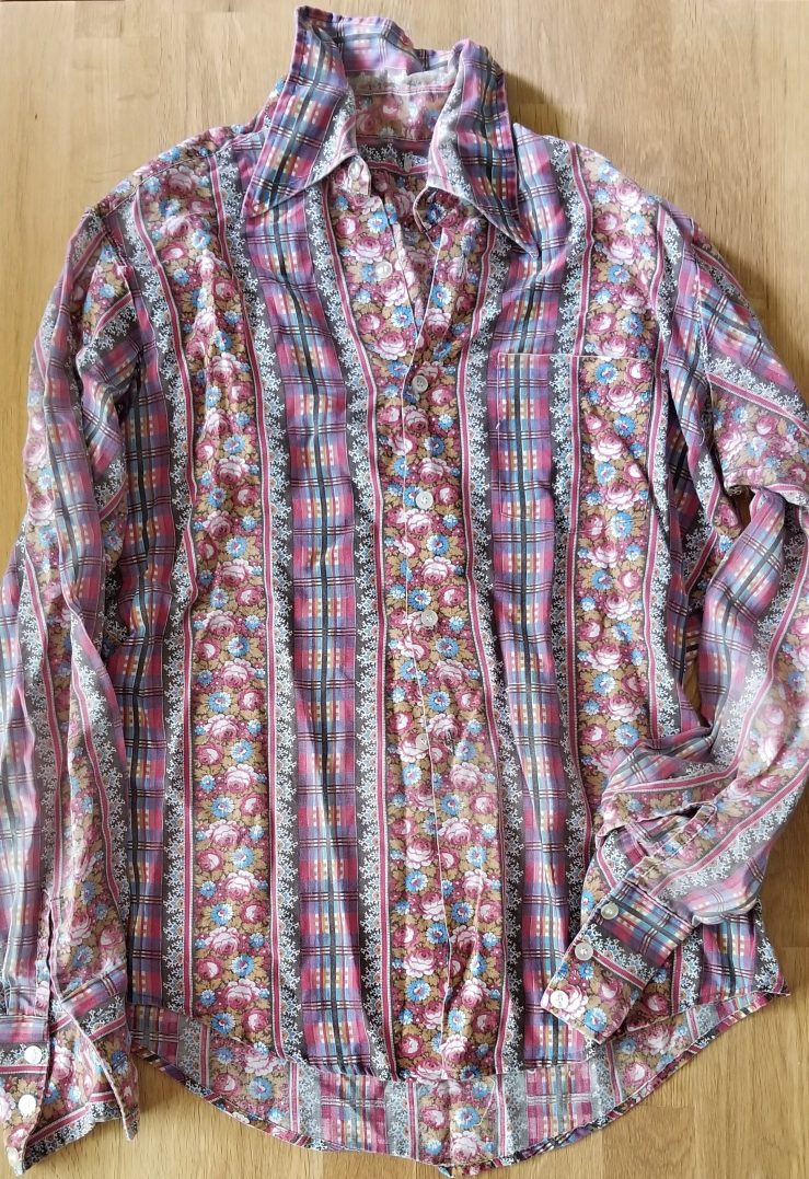 Pretty sure this button-up beauty *was* my dad’s. There’s no label, the fabric is so threadbare it’s practically see-through, and the sleeves are nearly completely ripped off in the back, but I love the colors! And it’s so soft!