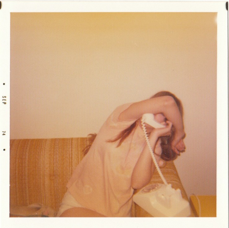 I found a photo of her wearing the tie dye shirt while talking on the phone in their (my parent’s) first apartment.
